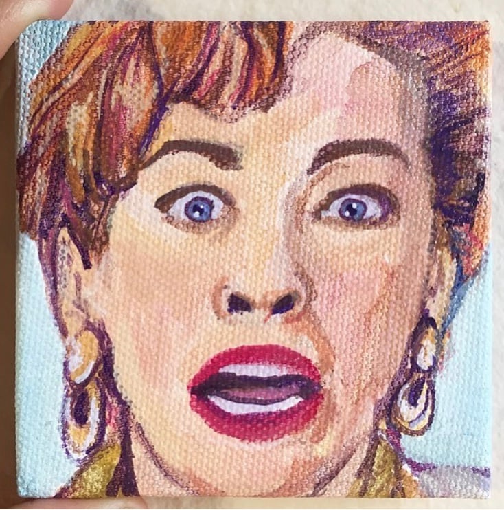 This is sold as a set only. 2 mini portraits of Kevin and his mom (Kate) from Home Alone. 3” x 3” acrylic on canvas.